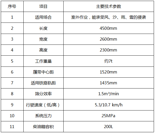 可用于標準軌距鐵道線路維護中砟石的篩分與回填作業(yè)。